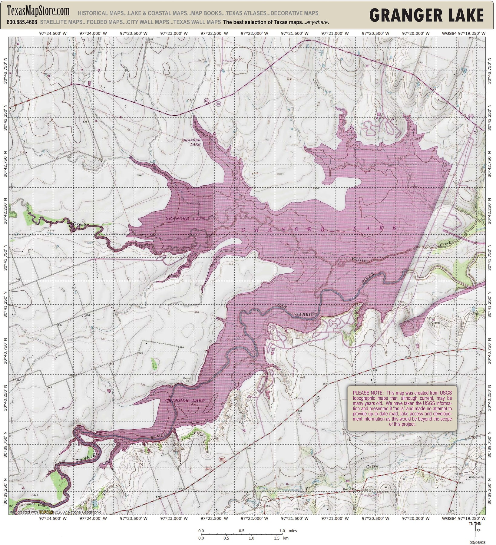 Granger Lake Texas fishing map – Texas Map Store